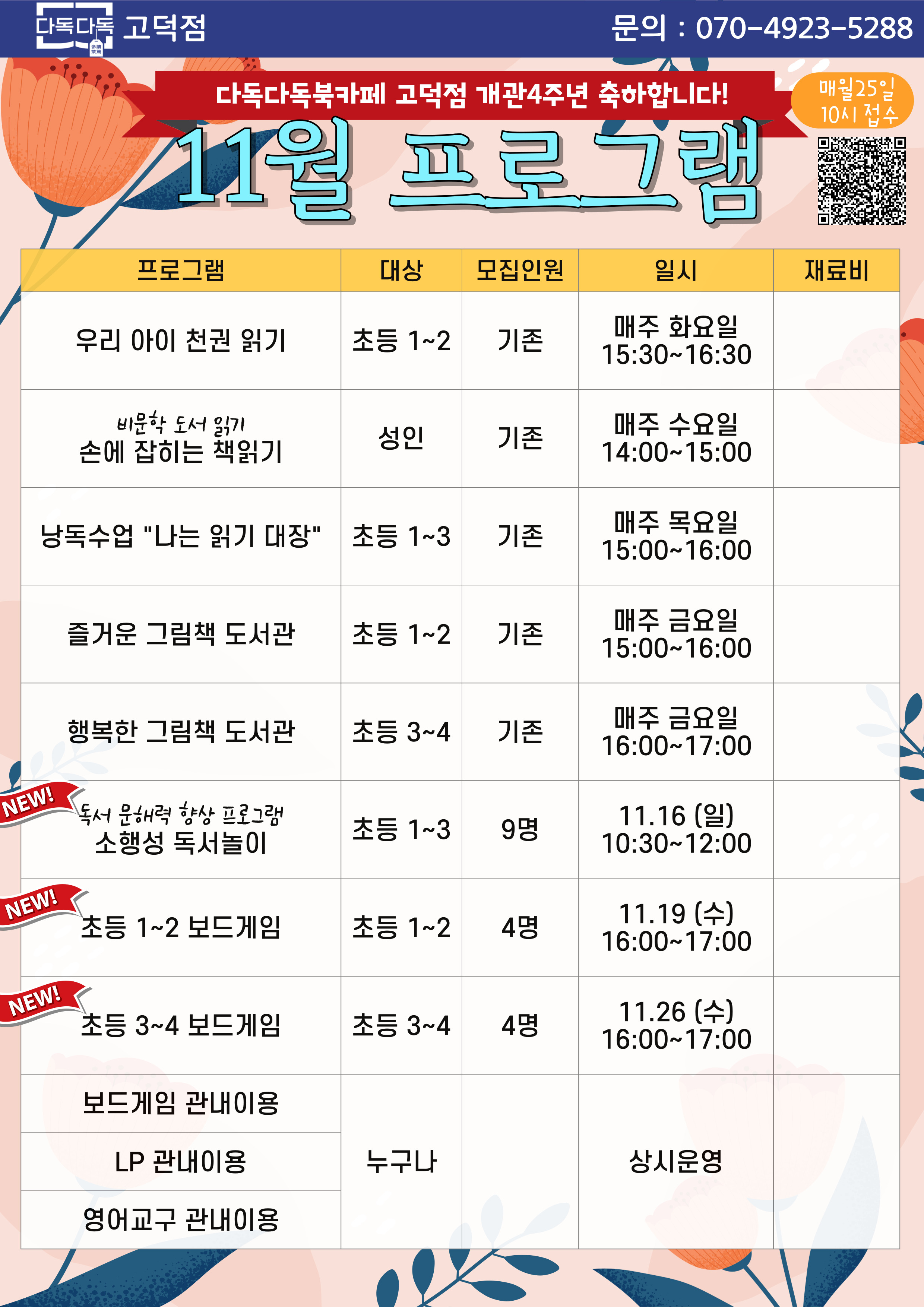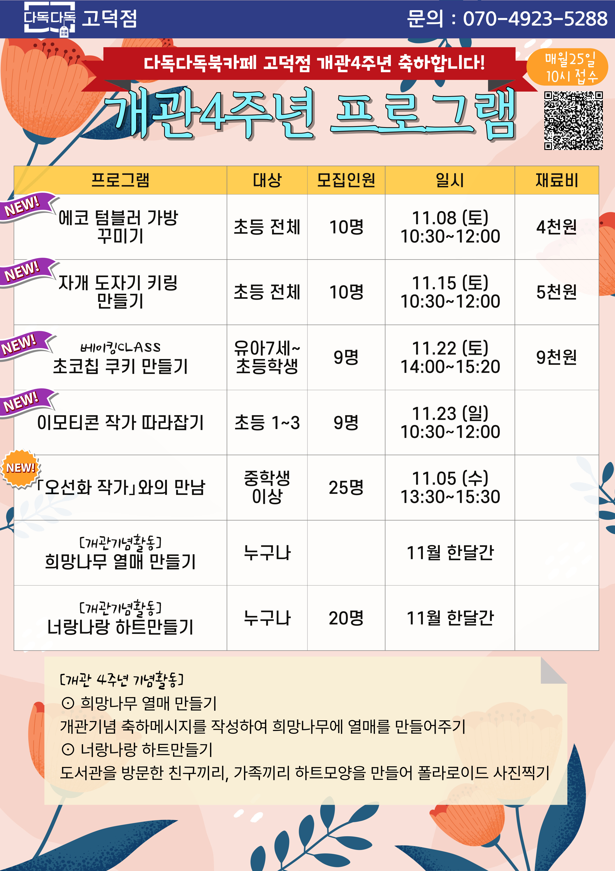 프로그램 신청은 10월 25일 10시에 시작합니다. 신청에 참고해주시기 바랍니다.