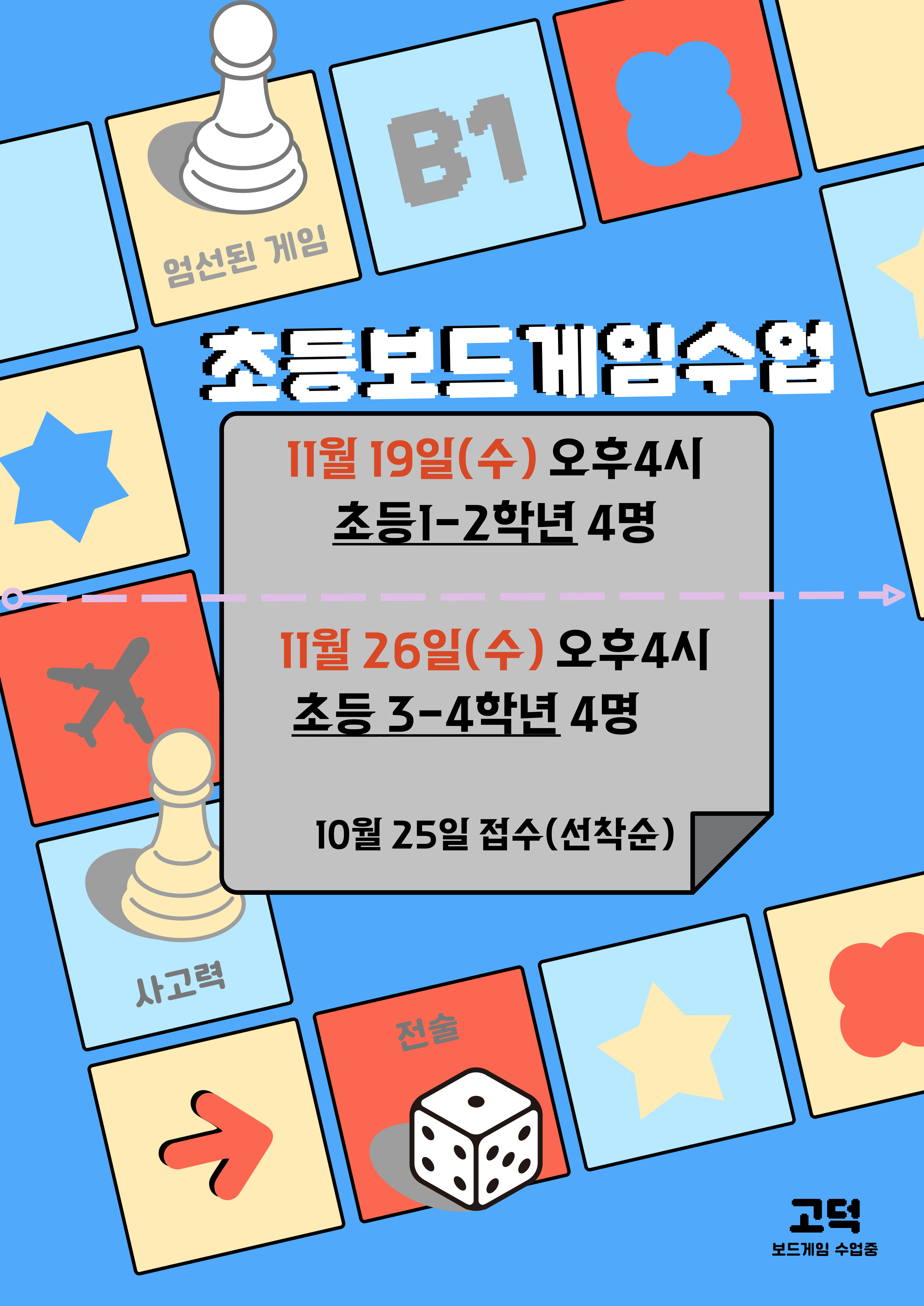여러가지 보드게임을 통해 전략적 사고와 집중력, 협동심을 키우는 시간!