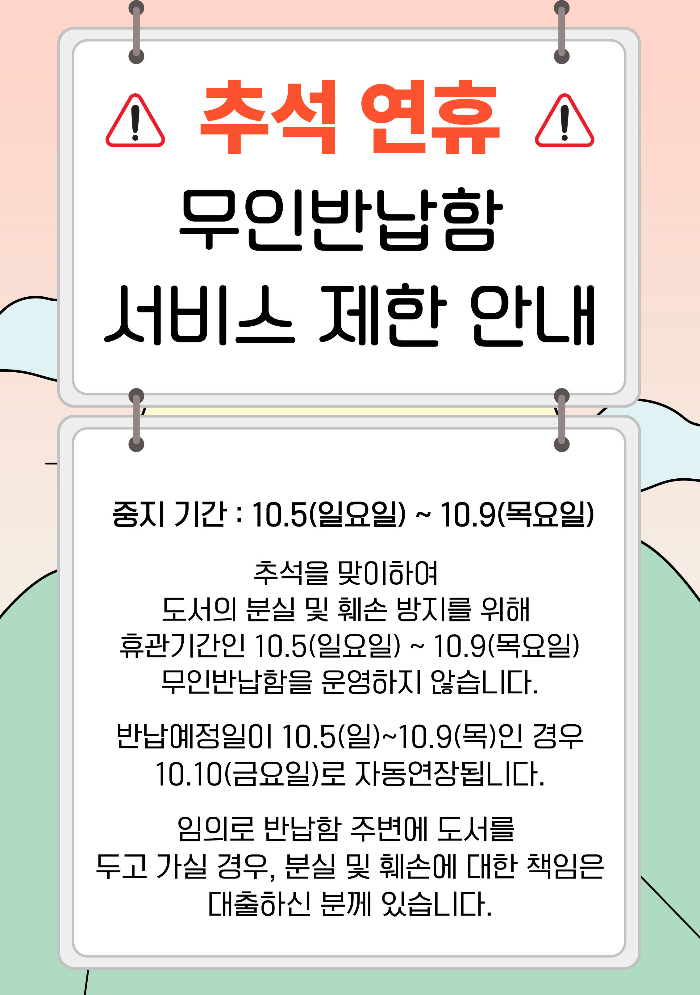 굽은다리역점 추석 연휴 기간 무인반납함 운영 중지 안내