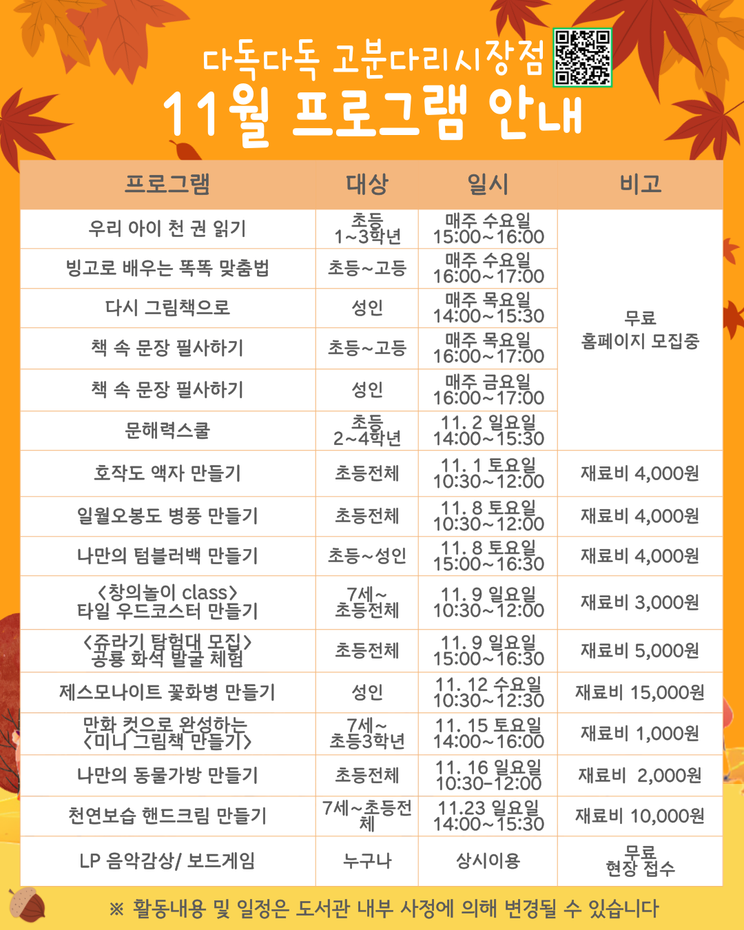 굽은다리역점 11월 프로그램 안내