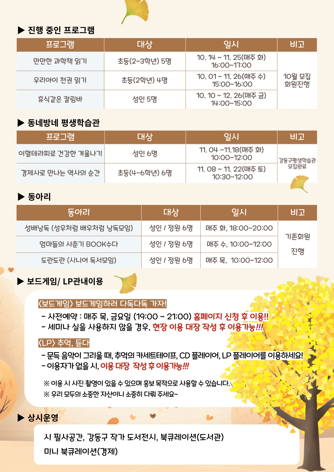 프로그램의 신청과 접수에 이용자분들의 배려 부탁드립니다.