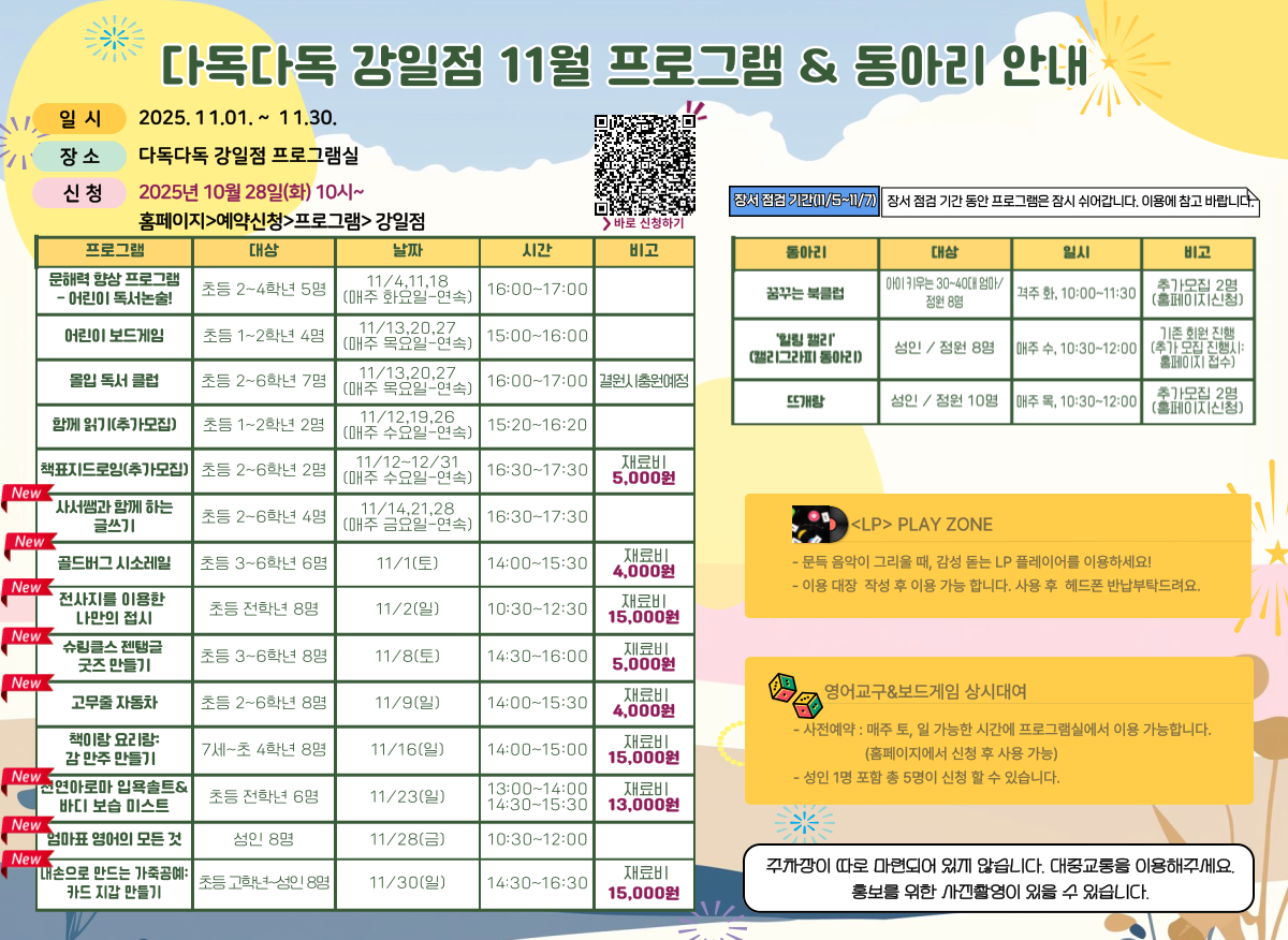 다독다독 홈페이지 > 예약신청 > 프로그램 (강일점 선택)