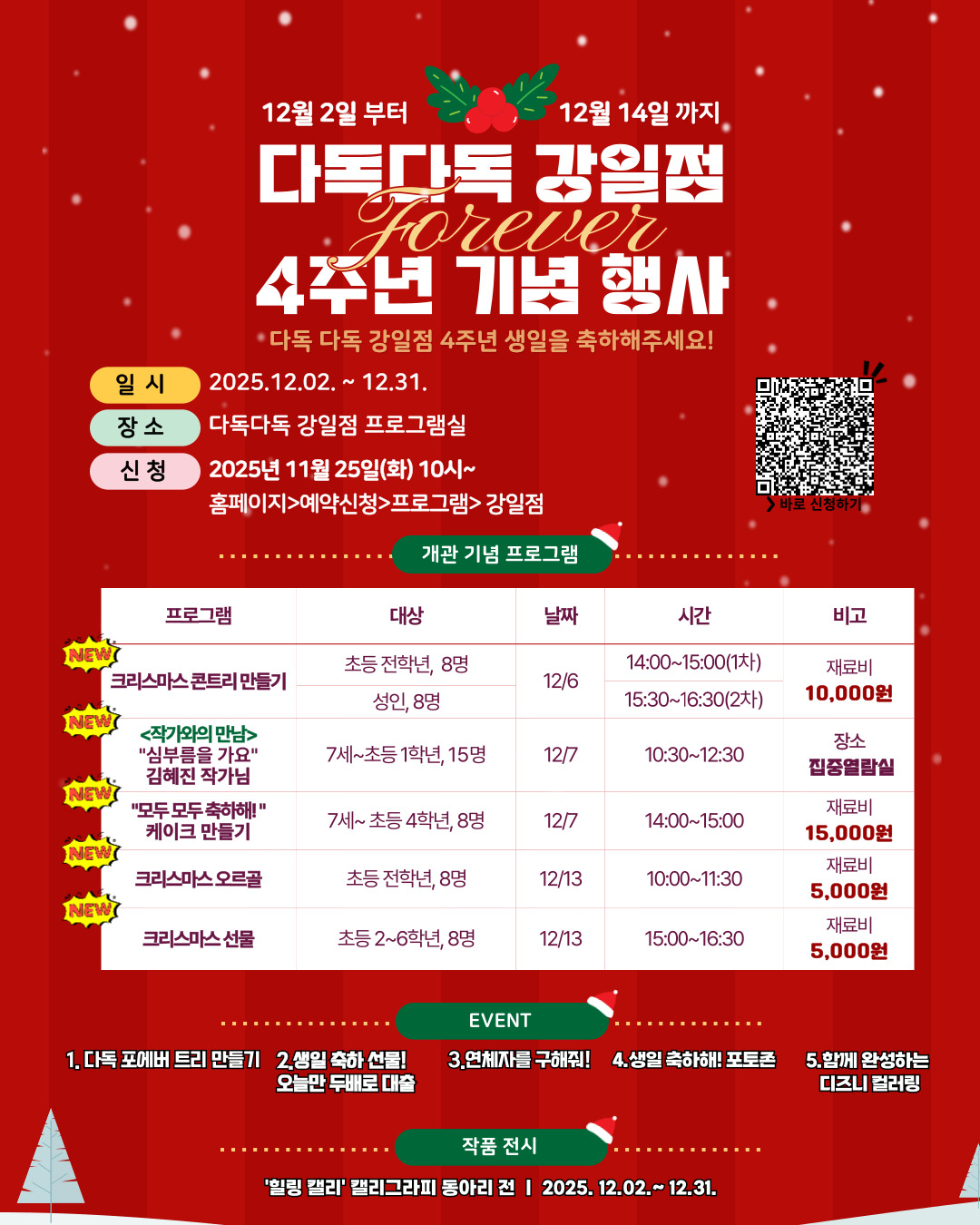 강일점 개관 4주년 기념 행사 & 12월 프로그램 안내