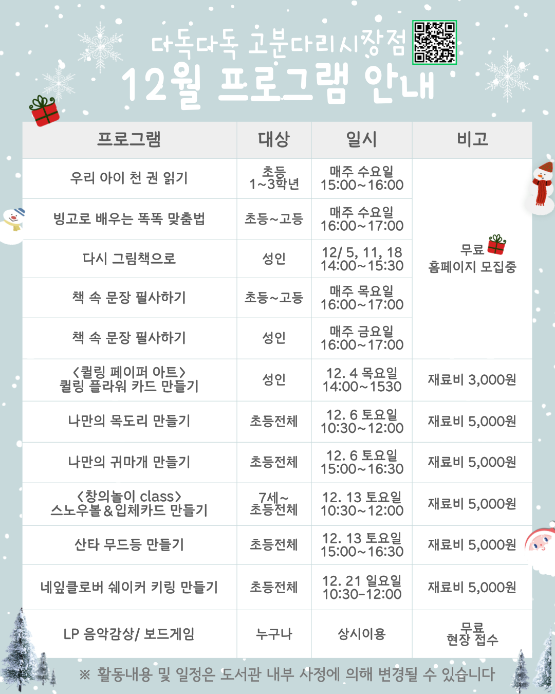 고덕점 12월 프로그램 안내