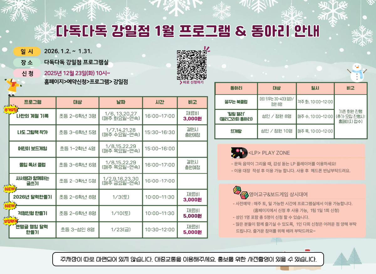 강일점 2026년 1월 프로그램 안내