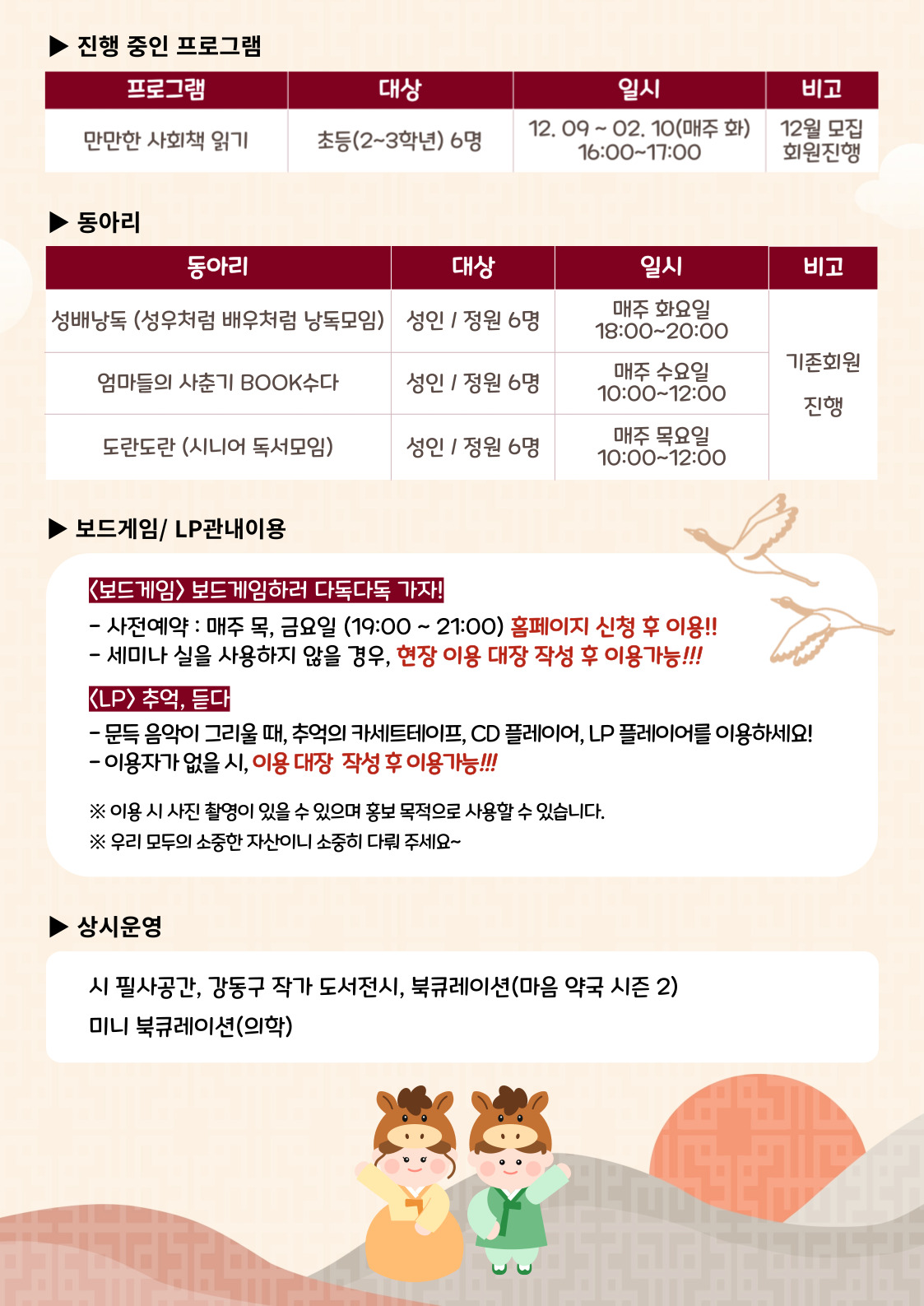 프로그램의 신청과 접수에 이용자분들의 배려 부탁드립니다.