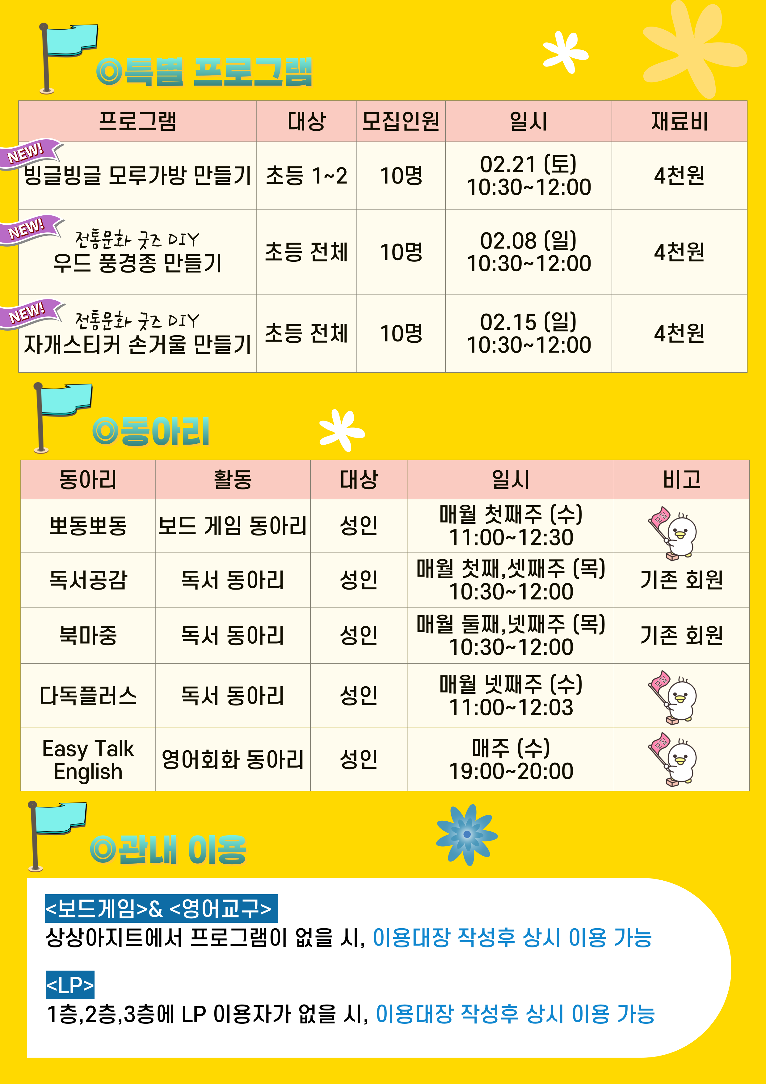 프로그램 신청은 1월 25일 10시에 시작합니다. 신청에 참고해주시기 바랍니다.