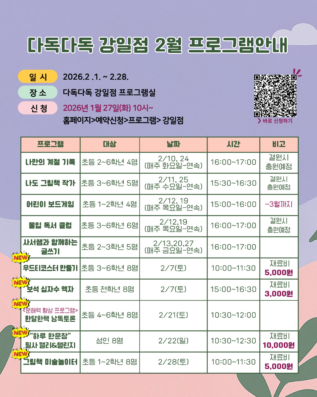 강일점 2026년 2월 프로그램 안내