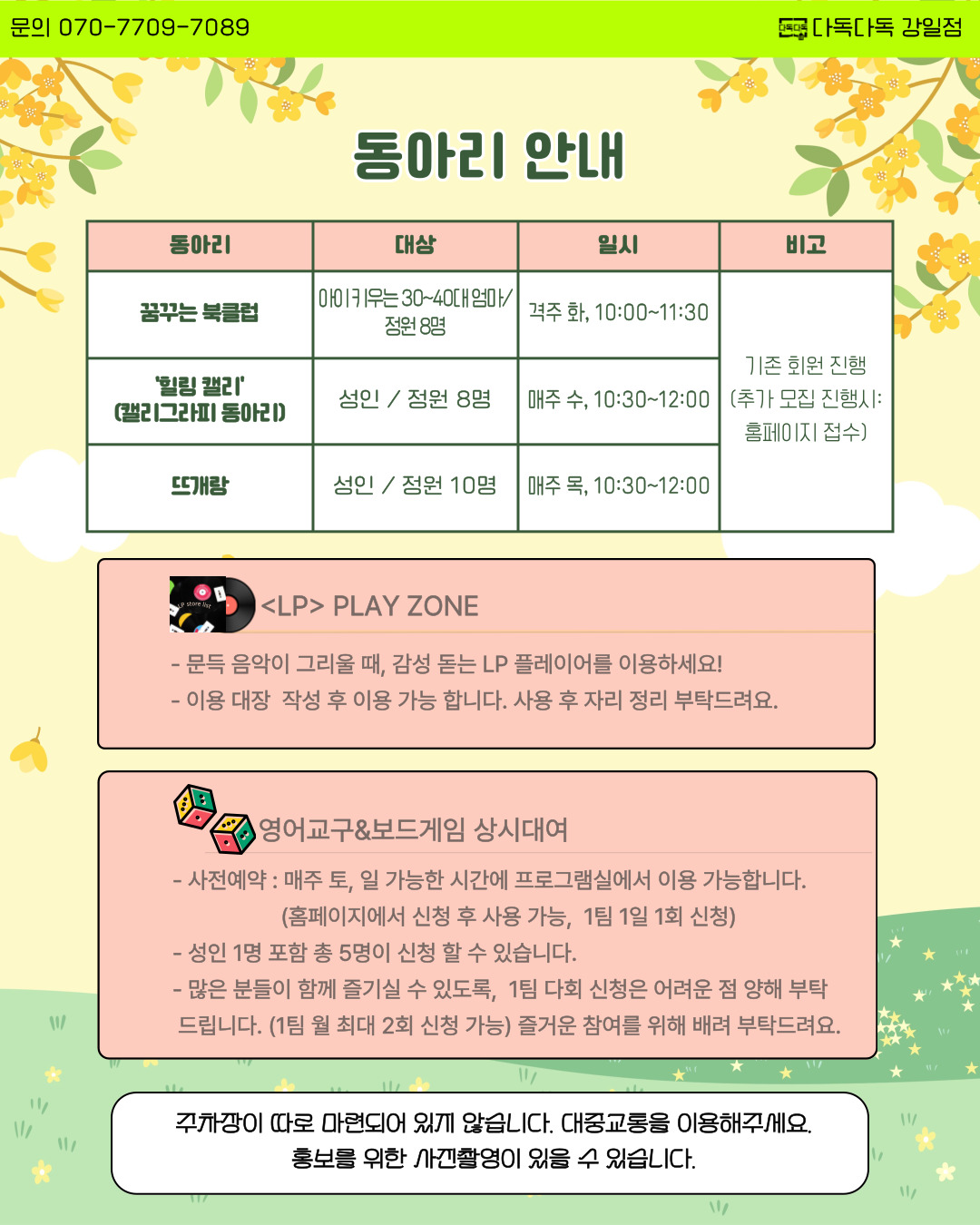 *강일점은 주차장이 따로 마련되어 있지 않습니다. 대중 교통 이용해 주세요~