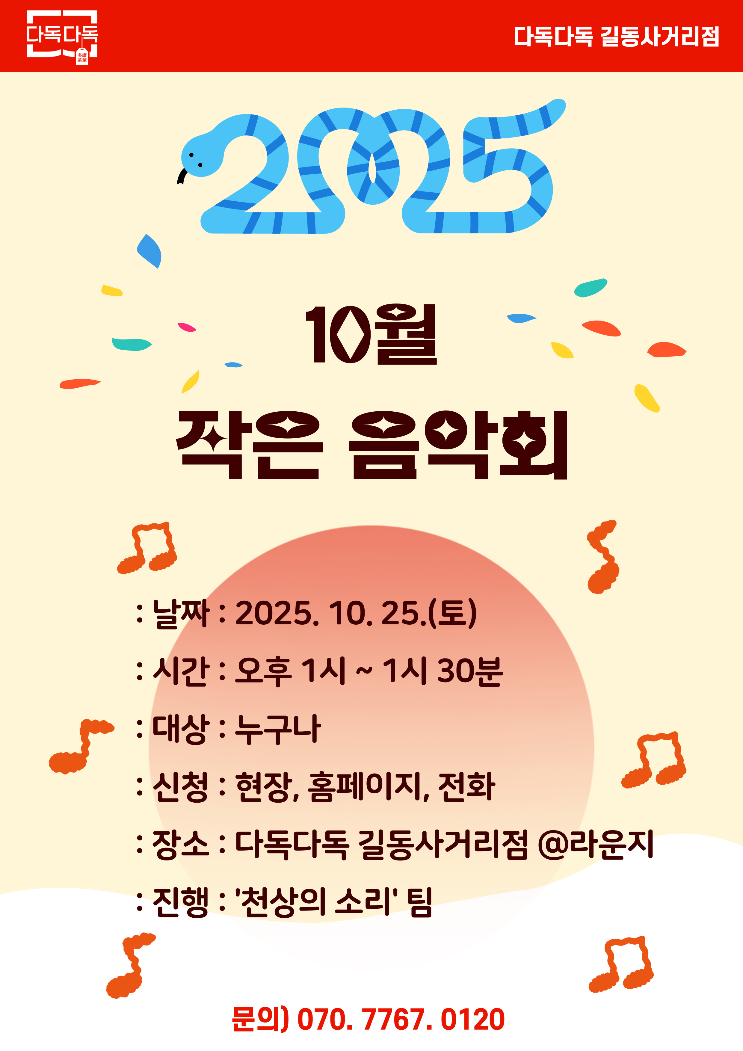 #북카페도서관 #다독다독 #길동사거리점 #10월 다독다독 작은음악회 #문화행사 #천상의 소리