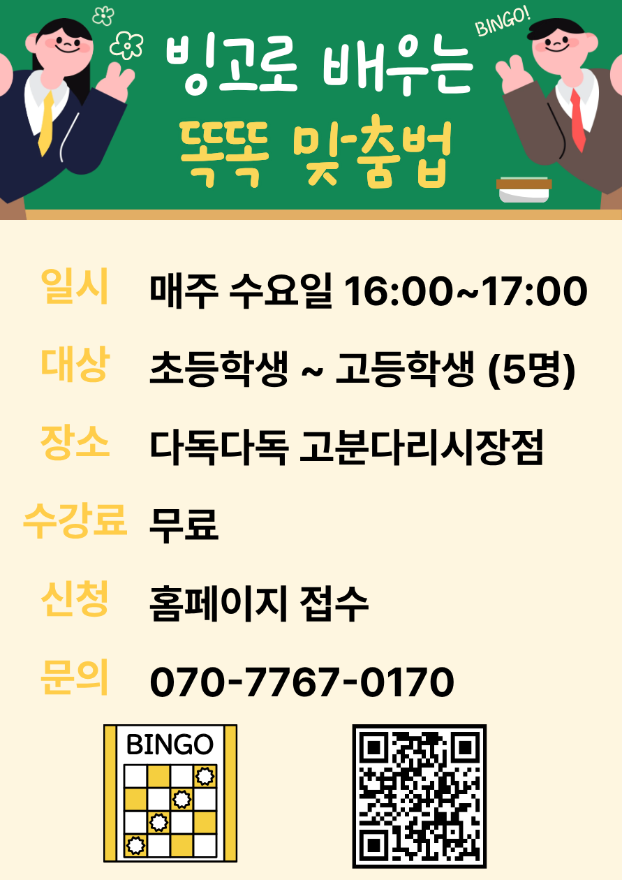 초등학생부터 고등학생까지 누구나 즐기며 실력을 키우는 똑똑 맞춤법 빙고!