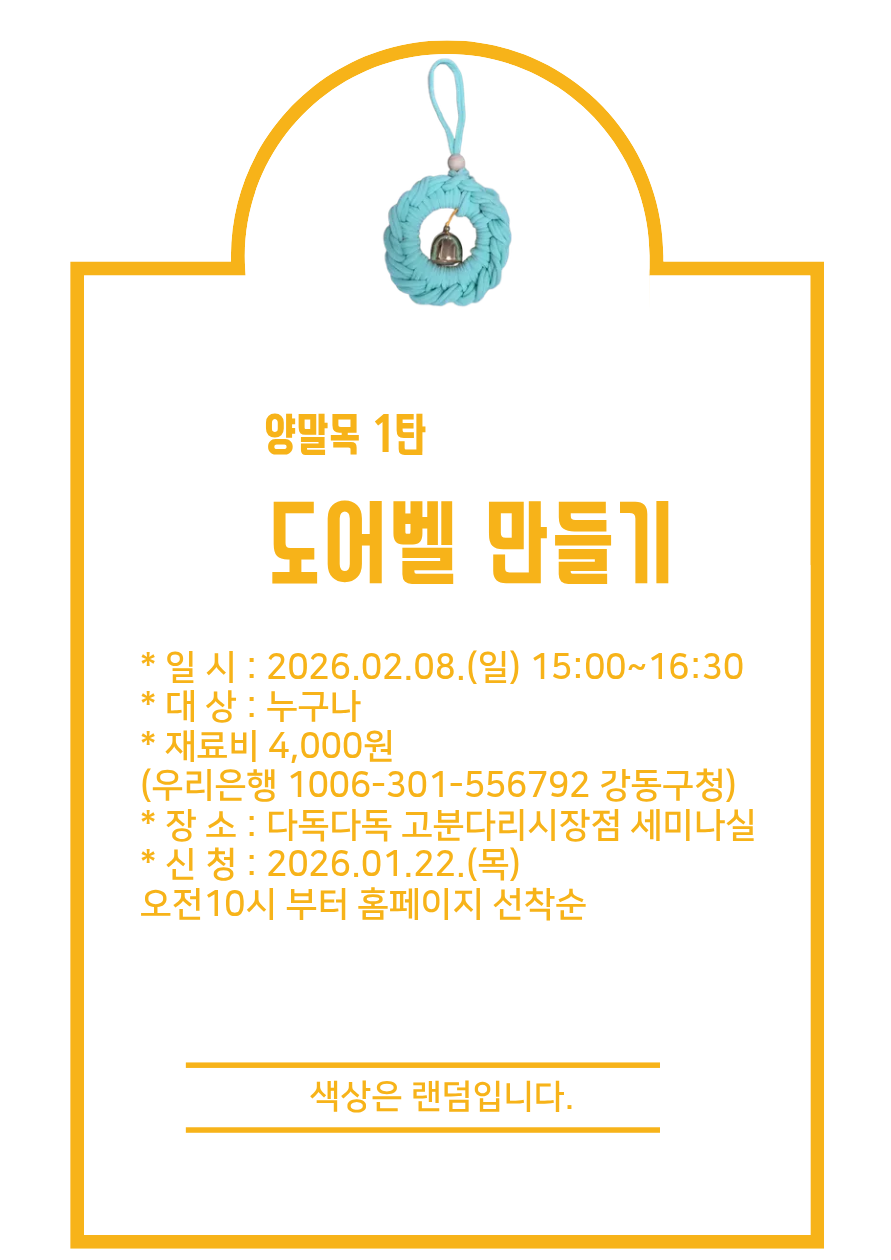 * 재료비 4,000원(우리은행 1006-301-556792 강동구청문화예술과)