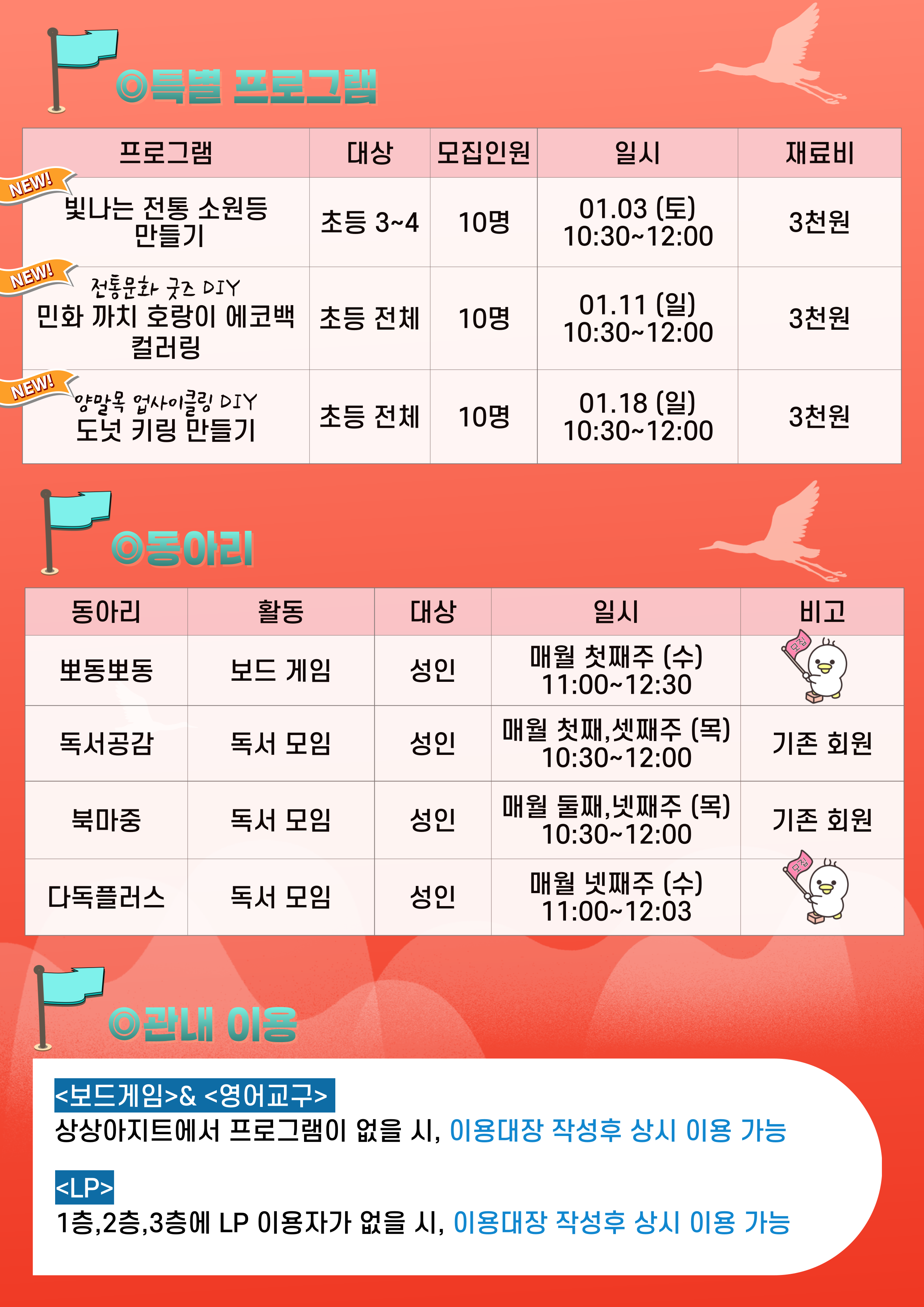 프로그램 신청은 12월 25일 10시에 시작합니다. 신청에 참고해주시기 바랍니다.