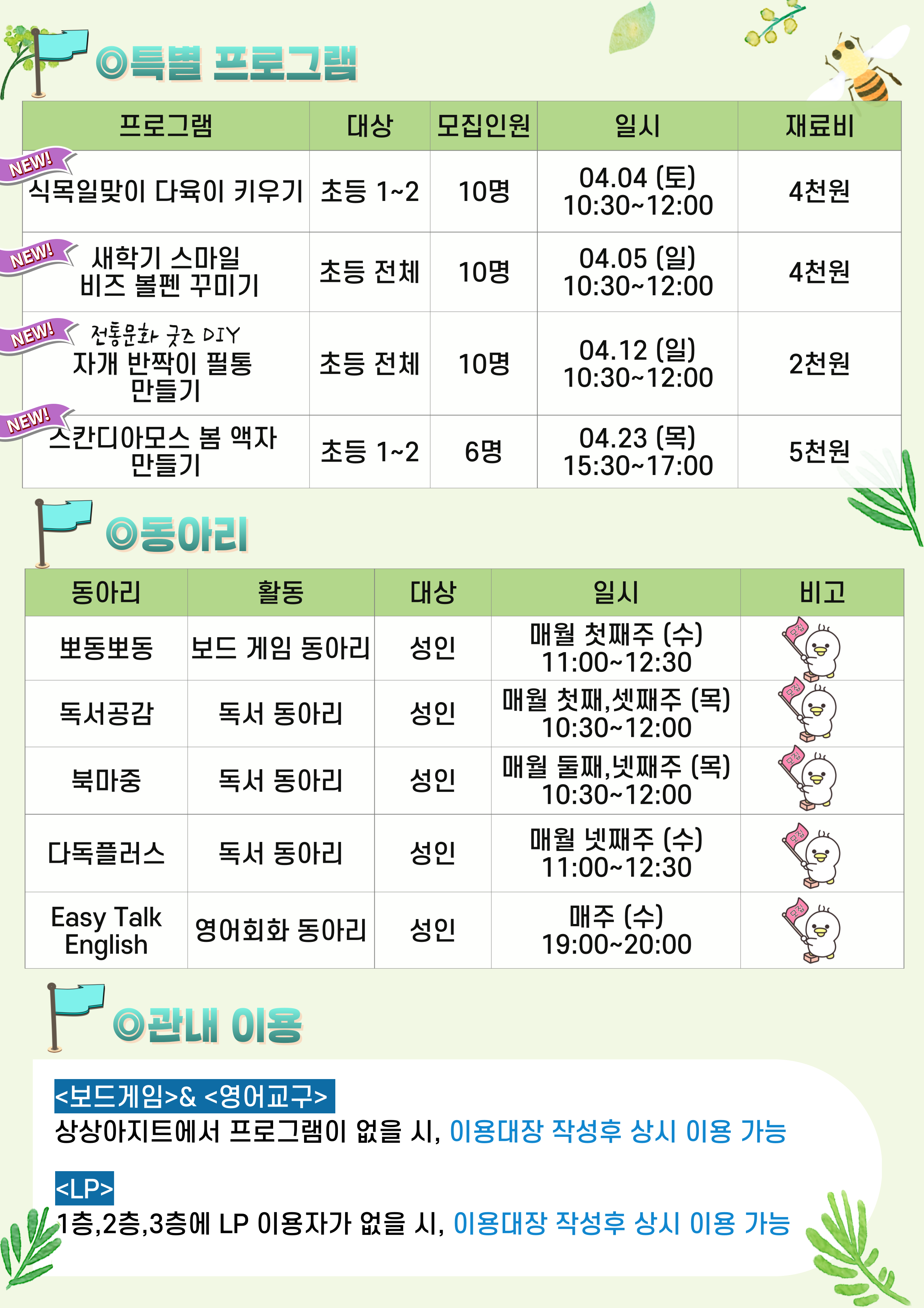 프로그램 신청은 3월 25일 10시에 시작합니다. 신청에 참고해주시기 바랍니다.