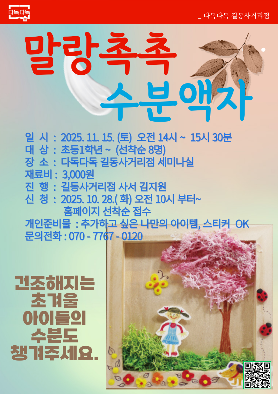 2. 다독 다독 길동사거리점 (070. 7767. 0120)으로 전화 연락 부탁드립니다